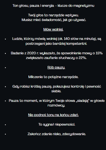 ✅ jak mówić mniej, ale mocniej, tak by każde zdanie zostawało w głowie rozmówcy,